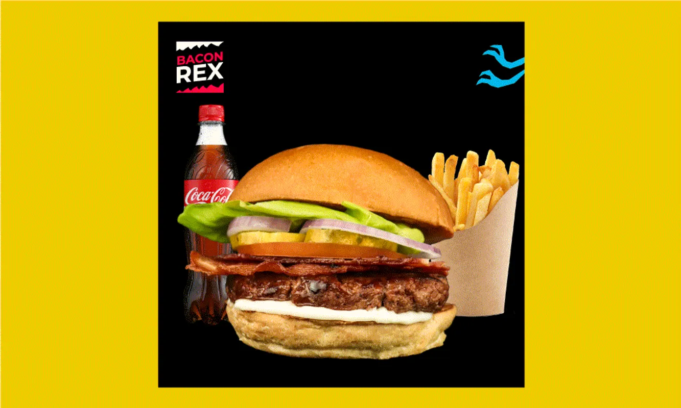 1/4 de libra carne 100% de res madurada, tocineta, salsa tirano, cebolla roja, lechuga, tomate y pepinillos + 150 gr de papas a la francesa + bebida.